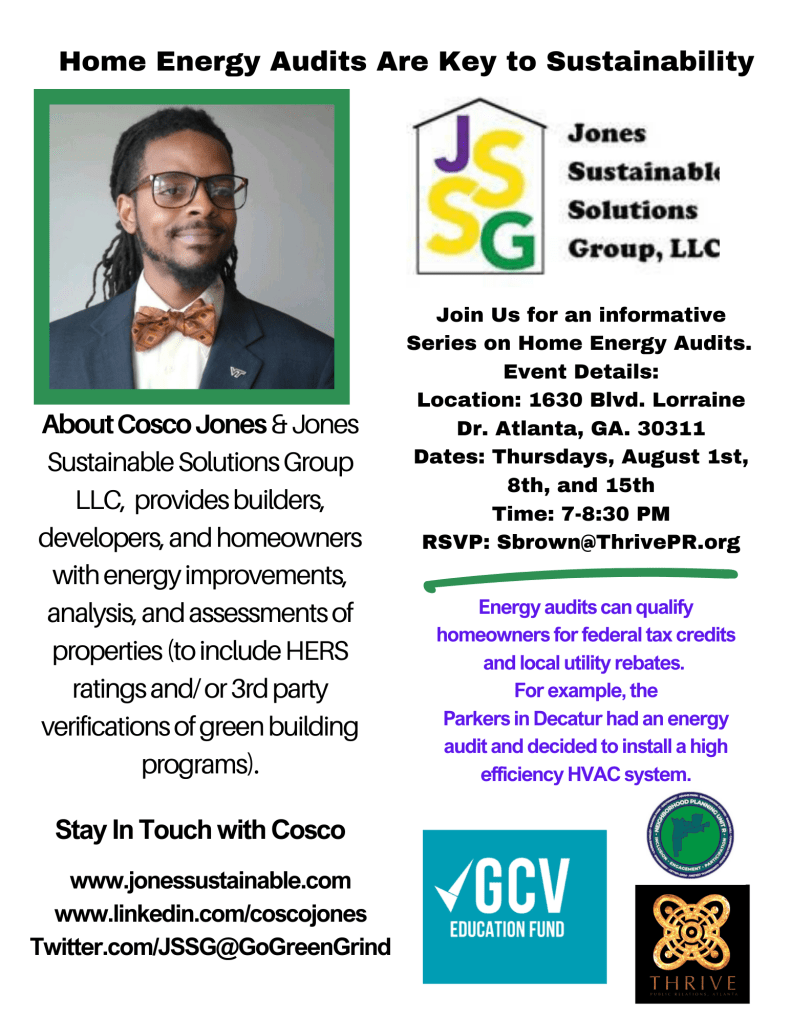 Cosco Jones is one of the players in Atlanta’s commitment to clean energy by 2035. I first heard of Cosco Jones through the group that I work with, the Metropolitan Atlanta Clean Energy Collective, MACEC or the Collective. The Collective, immediately connected with him and connected him with others. Cosco company Jones Sustainable Solutions Group, completes the home energy audits that test your home energy efficiency, and air quality and delivers an audit of the essential tests, key components to the WeatheRise ATL Program, visit 100ATL.com for more information. Cosco believes that regular home energy audits are one of the keys to keeping your home sustainable. The word sustainability has been flying around for a few years but here is why: Sustainability is a social goal for people to co-exist on Earth over a long time. Definitions of this term are disputed and have varied with literature, context, and time.